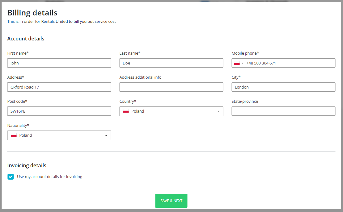 If your invoicing information matches your account details, simply select the option to use the same information for invoicing. If your billing information is different, enter the correct details in the dedicated Invoicing section.