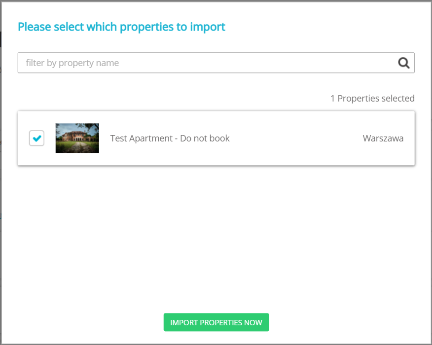 - A confirmation window pops up. Confirm the conditions and click I understand, import properties now.