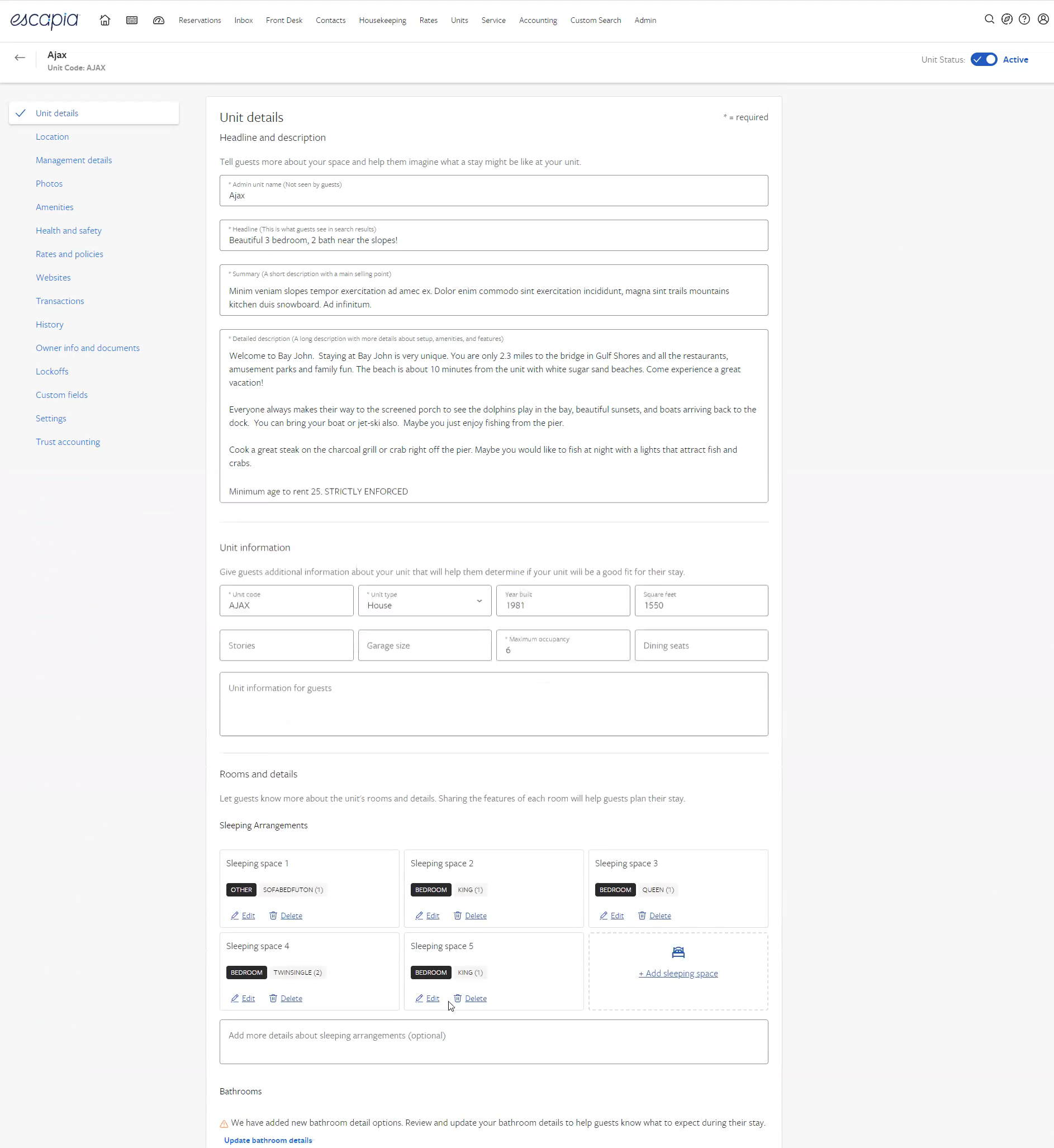 In Escapia: Units > Select property > Unit details > Detailed description |