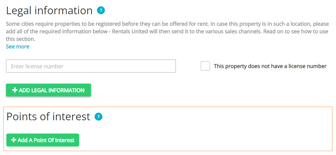 In Points of interest section, it is possible to provide details on facilities, points of interest and other attractions in the nearest area along with their approximate distance from the property.