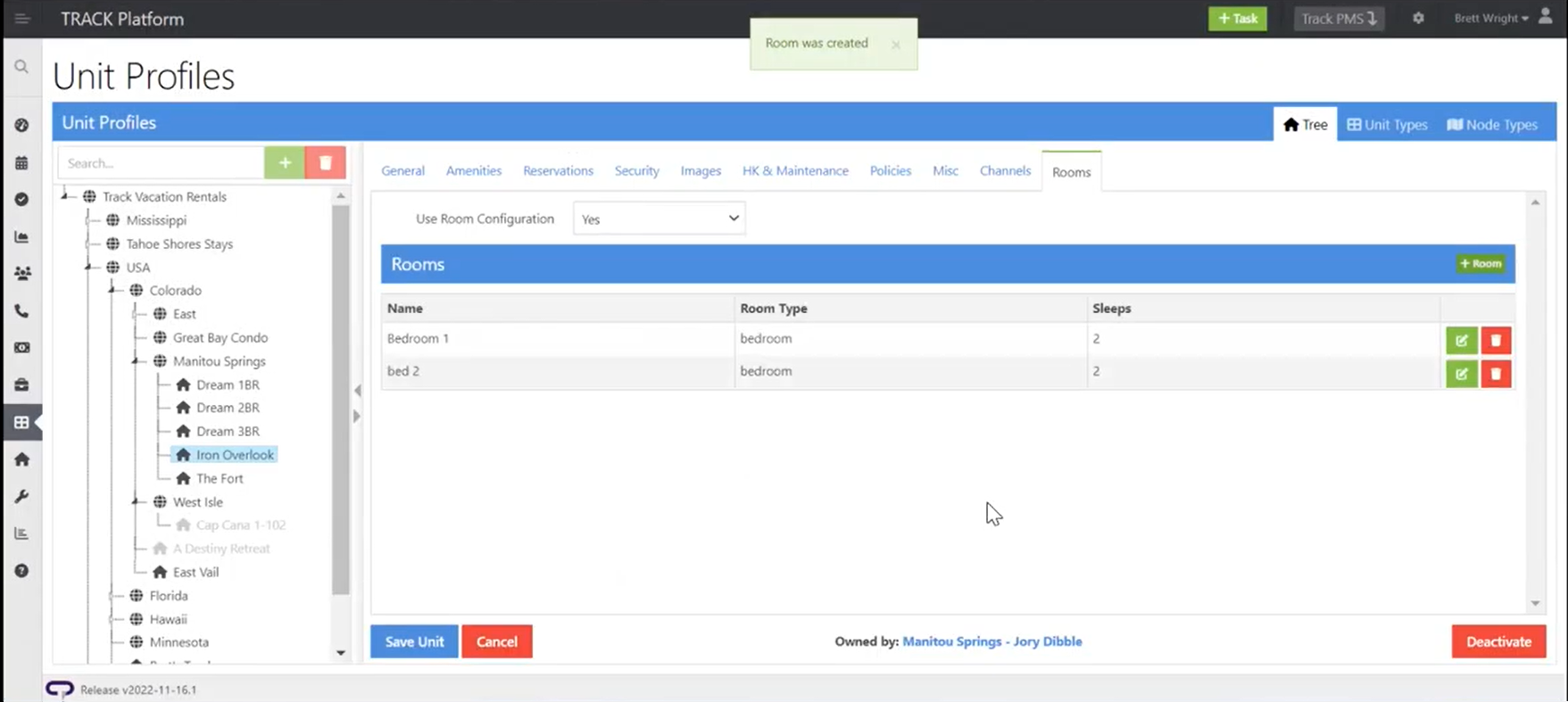 In TRACK: Unit Profiles > Select Property > Rooms |