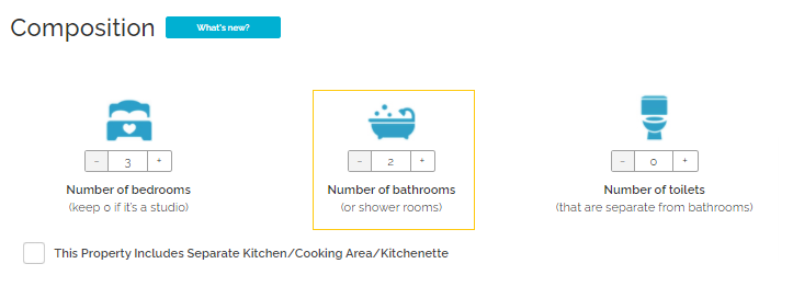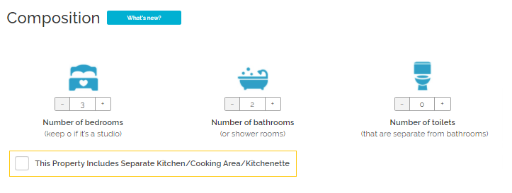 Kitchen refers to the separated kitchen area within the property. If you tick the separate kitchen checkbox, then a kitchen room type will be created at your property. In Rentals United it is treated as a room type.
