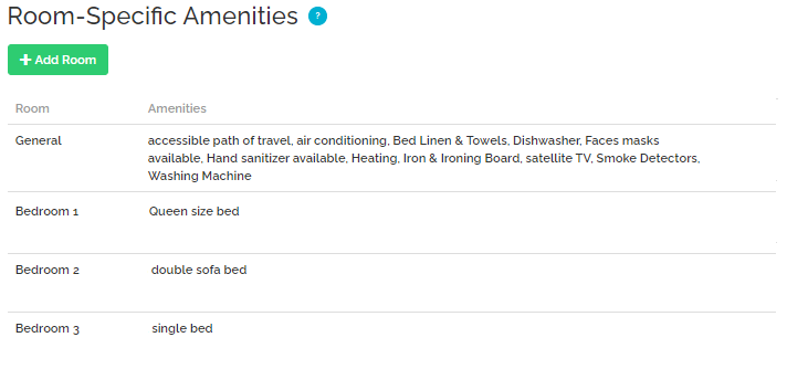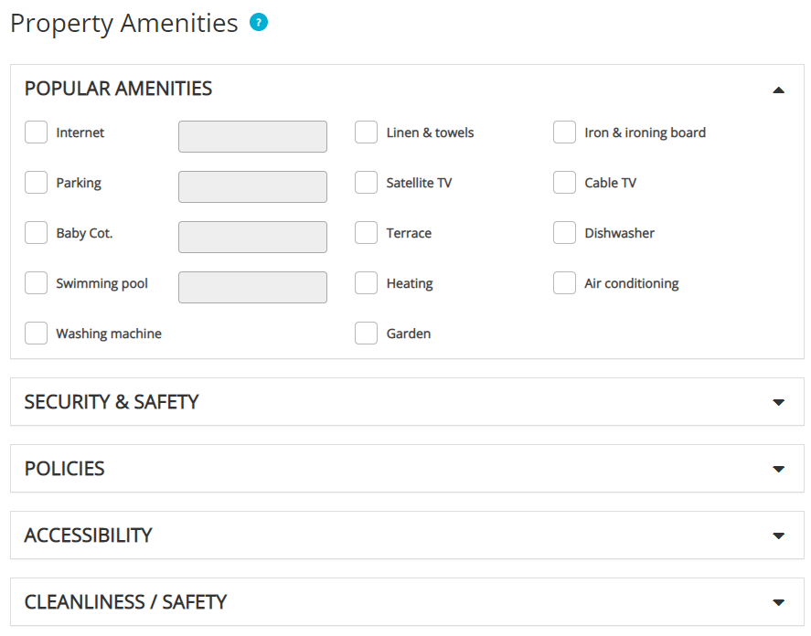 Rentals United retrieves also basic information about the property's layout, number and composition of rooms, as well as amenities available at the property. The property amenities are mapped between TRACK and Rentals United for each client separately with the assistance of a Rentals United specialist.